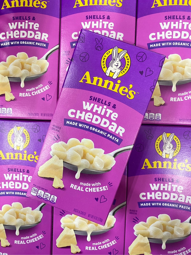 Annie’s Shells & White Cheddar là dòng mì phô mai nổi tiếng từ Mỹ, sử dụng pasta hữu cơ kết hợp với phô mai cheddar trắng thật, mang đến hương vị béo mịn, thơm ngon tự nhiên. Thiết kế sợi mì hình vỏ sò giúp giữ trọn lớp sốt phô mai, tạo cảm giác đậm đà trong từng miếng ăn.