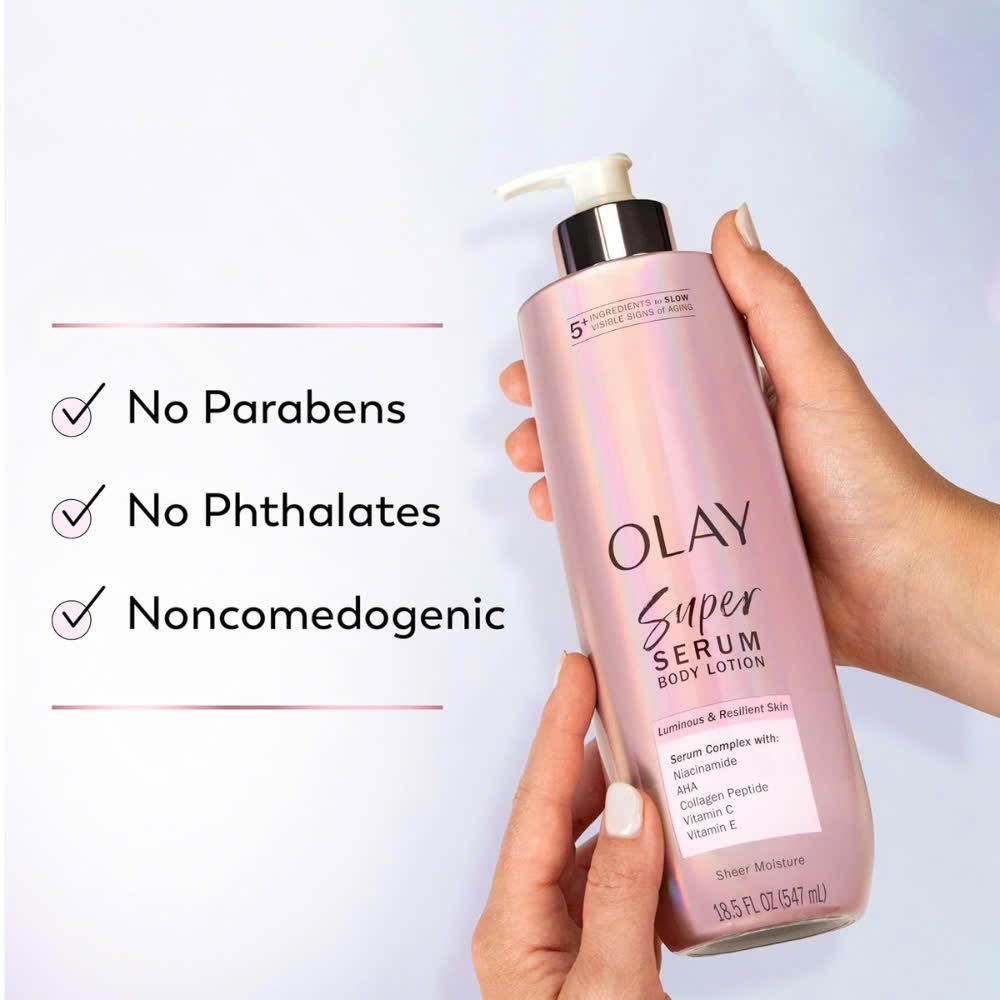 Sữa tắm Olay Super Serum Body Wash với công thức serum 5 trong 1 giúp làm sạch dịu nhẹ đồng thời nuôi dưỡng làn da mềm mịn, sáng khỏe ngay khi tắm. Chất sữa tắm dạng lotion tạo bọt nhẹ, không làm khô da, phù hợp dùng hằng ngày.