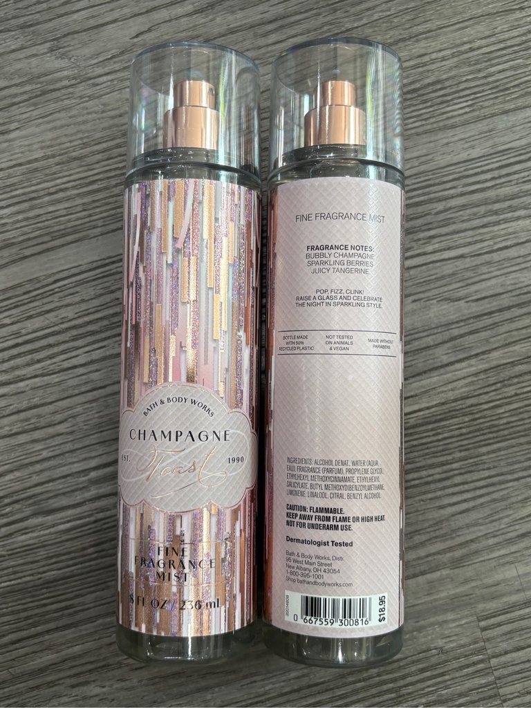 Bath & Body Works Champagne Toast là dòng xịt thơm toàn thân nổi bật với mùi hương ngọt nhẹ, tươi tắn, phù hợp dùng hằng ngày.